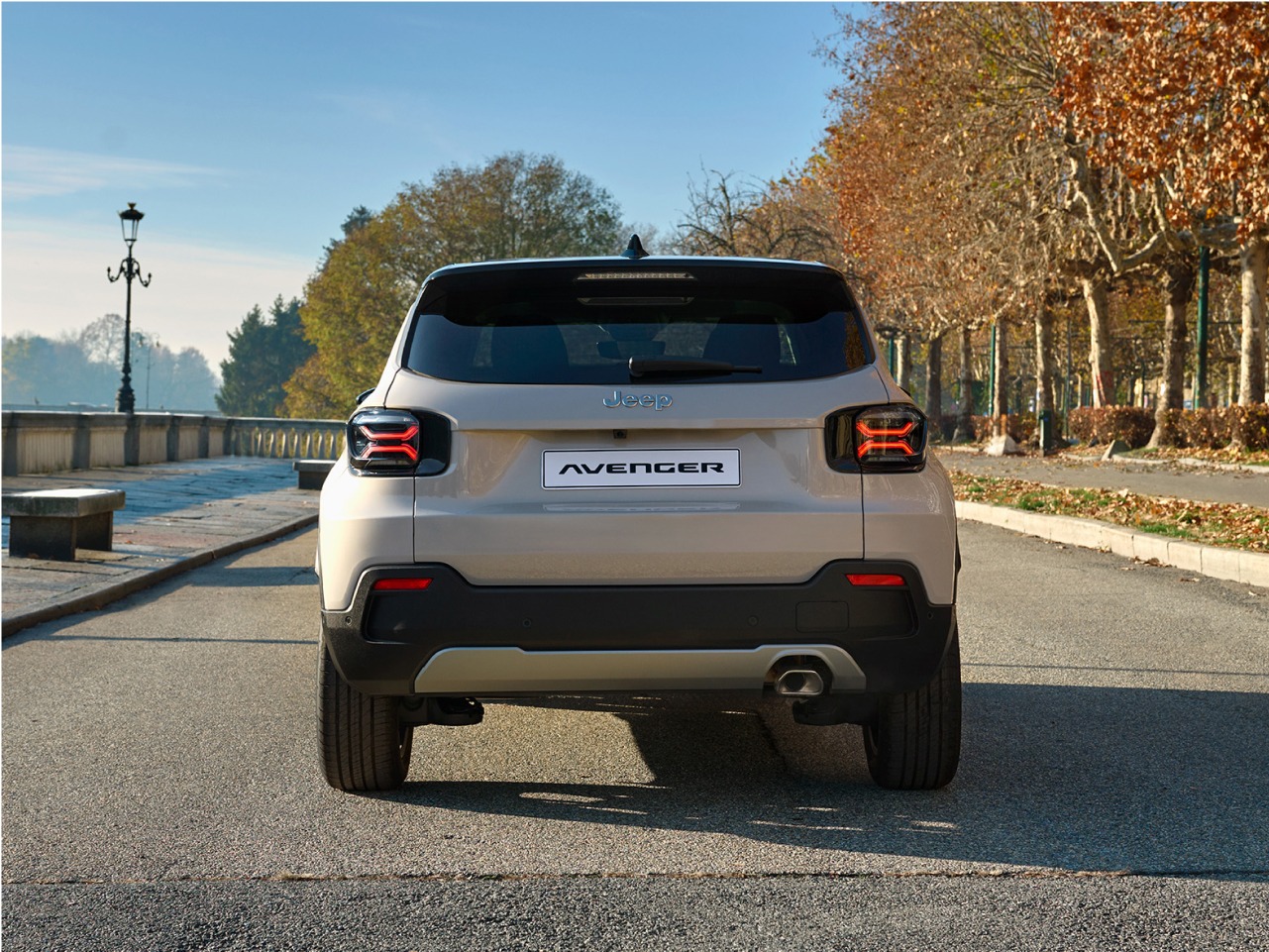 EXTERIOR E ESTILO: • Jantes de liga leve pretas de 17” (com tampa preta) • Vidros traseiros escurecidos • Logo Jeep em preto • Logo Avenger em preto