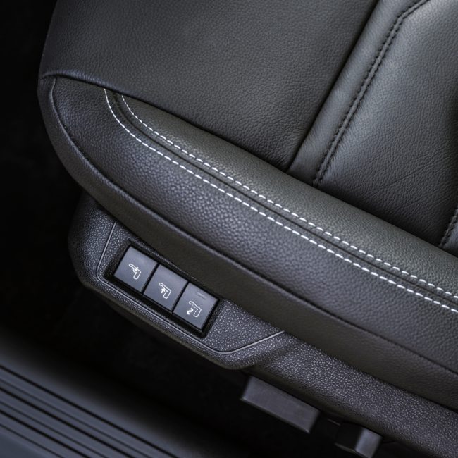 INTERIOR: • Banco do condutor com ajuste manual de 6 modos • Estofos em tecido premium com inserções em cinzento • Chão da bagageira ajustável em altura • Volante em pele sintética com inserções cromadas