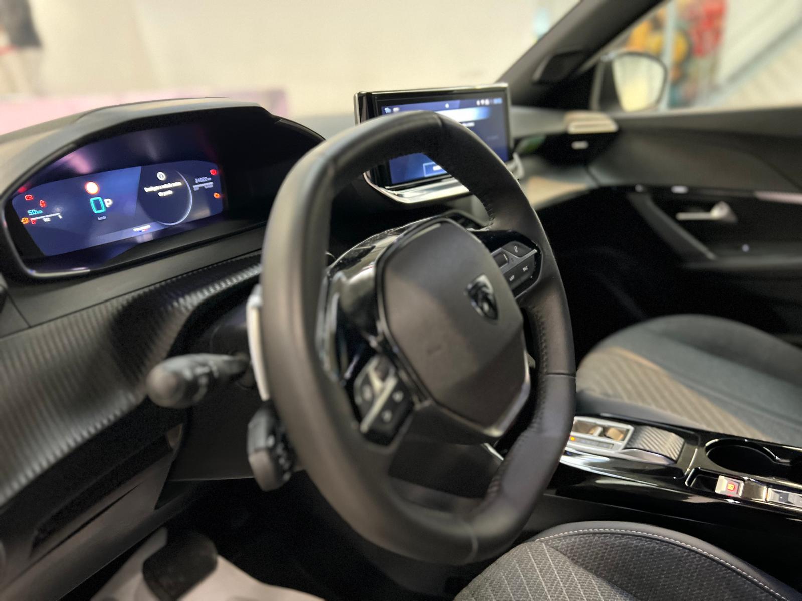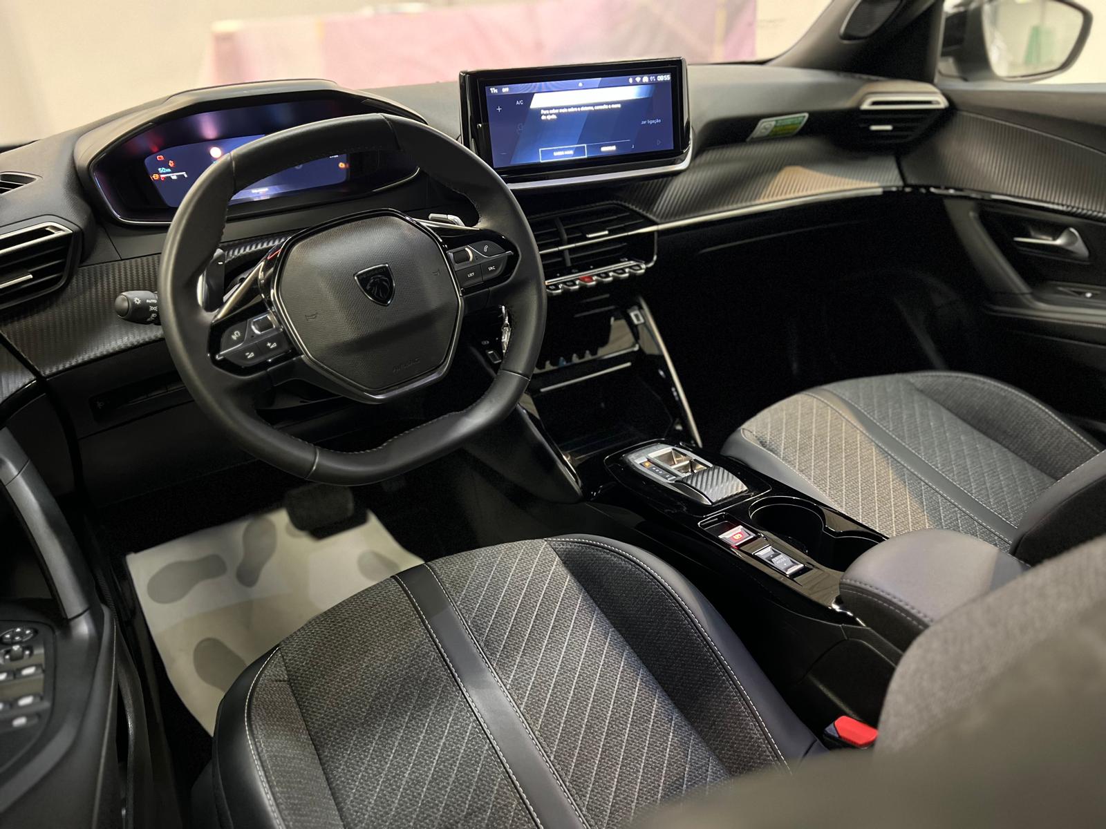No interior, destaca-se pelo ambiente moderno e tecnológico, com o característico Peugeot i-Cockpit, painel digital e sistema multimédia intuitivo. O espaço é bem aproveitado, com 5 lugares e uma bagageira de 434 litros, ideal para uso familiar ou diário.